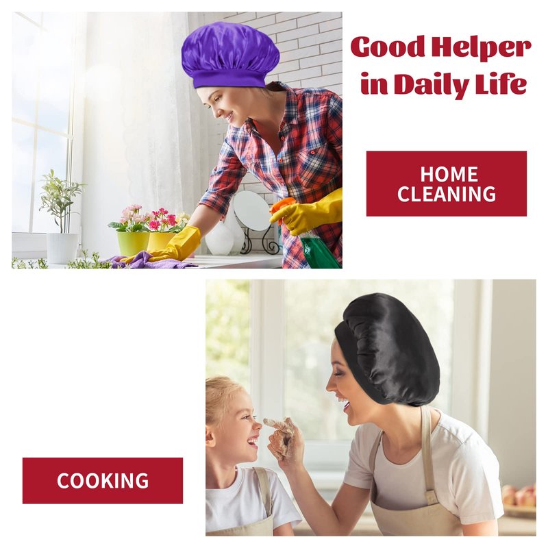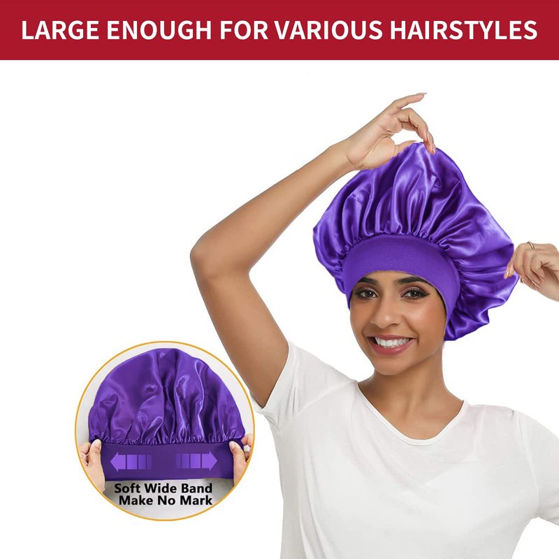 - Extra Large & Cute for All Hairstyles: The size of the satin hair bonnet is about 12.6''/32 cm. Great for holding dreadlocks, braids, curly hair, natural hair, waves, long, tangled, perms, rollers, afros, buns, short, and up-dos. Keeping your various hairstyles when sleeping.