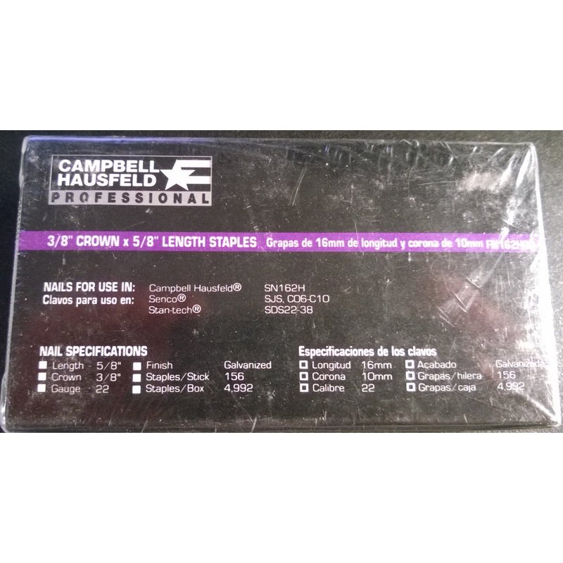Campbell Hausfeld 3/8'' Crown X 5/8" Length 22 Gauge #FN162H00 Galvanized Staples (5,000 Piece)