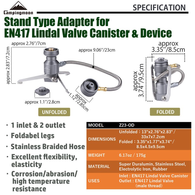 CAMPINGMOON Remote Stove Adapter 2 Outlets Stand Type for Camping Backpacking Isobutane Gas Fuel Canister, EN417 Lindal Valve Canister Z23-OD
