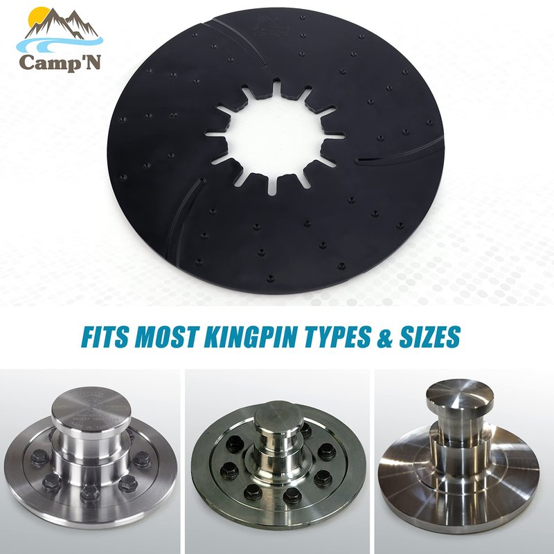- ➋ EXTENDS THE LIFE of your hitch pin plate and receiver by using the Camp'N Fifth Wheel Hitch Plate. The lube plate or disc takes the sacraficial beating while preserving your fifth wheel hitch