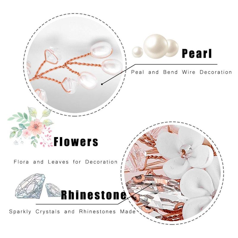 Product Description This beautiful hairband is hand-wired with superior rhinestone, pearls with gold wires.Good assistant for your wedding and good to DIY your own hairstyle, glittering under the lights, beautiful hair adding items to make you more charming. Imagine the sparkle of our extremely stunning wedding hair piece on your special day! Don't fall for cheap hair pieces that are flimsy, small metallic and not flexible. Elegant decorative fashion hair decorations for bride and bridesmaid