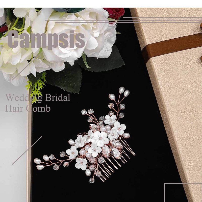 Campsis Wedding Bridal Hair Comb Rhinestone Pearl Hair Combs Flower Leaf Tiara Hair Accessory for Women Bride Brideamid Prom Party (Rose gold)
