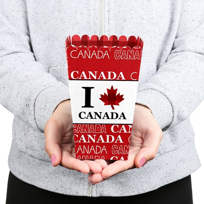 - POPCORN BOX PARTY SUPPLIES: Canada Day popcorn boxes will hold a variety of party food. Fill them with sweet treats or salty snacks. Popcorn, caramel corn, candies and other goodies will look amazing on your candy buffet with these Canadian Day favor boxes.