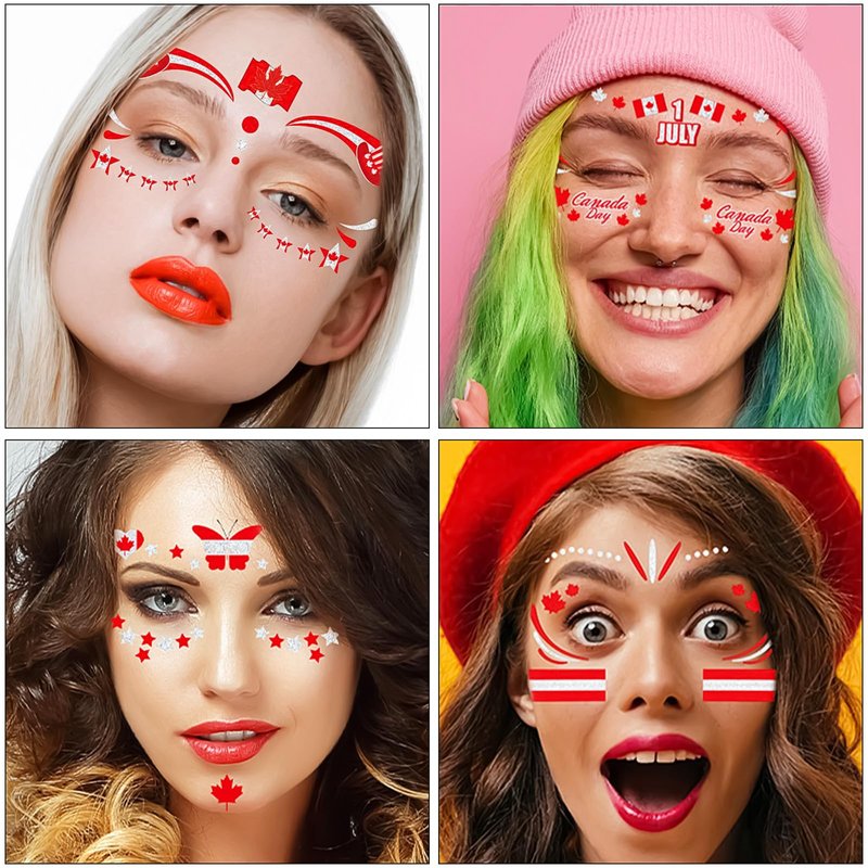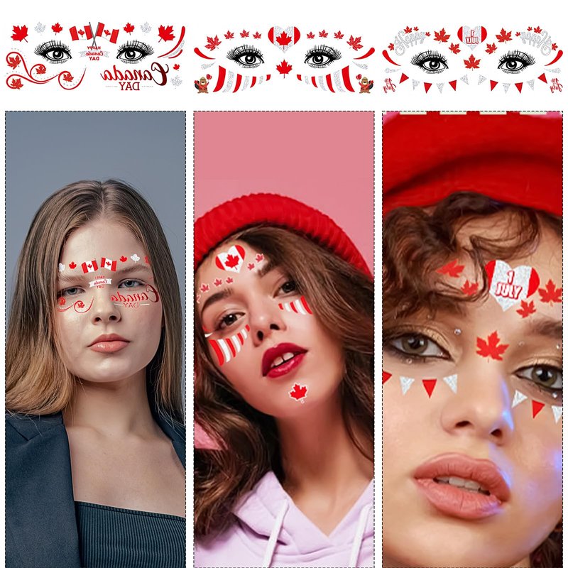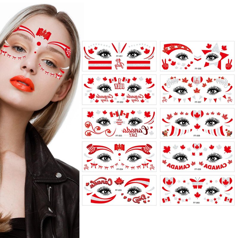 - Canada Face Tattoo Set: You will receive 10 Sheets of Canada Day Face Tattoo temporary tattoo stickers for men's and women's facial art decorations! Each temporary tattoo sticker measures 6.3 x2.6 inches/16 x 6.5cm, is suitable for adults and kids, and looks different and attractive at celebration parties!