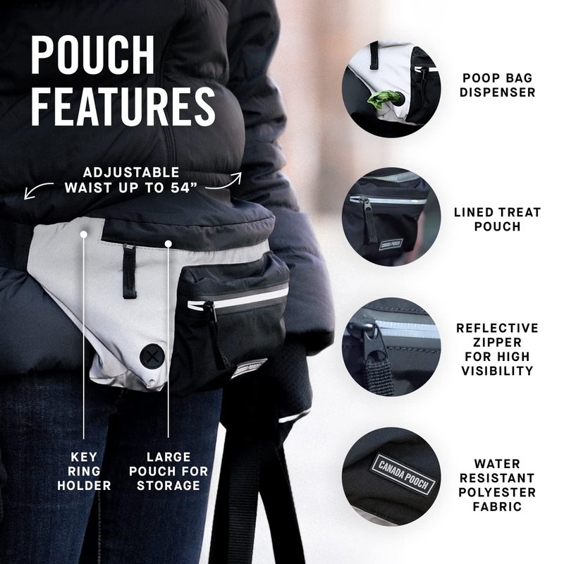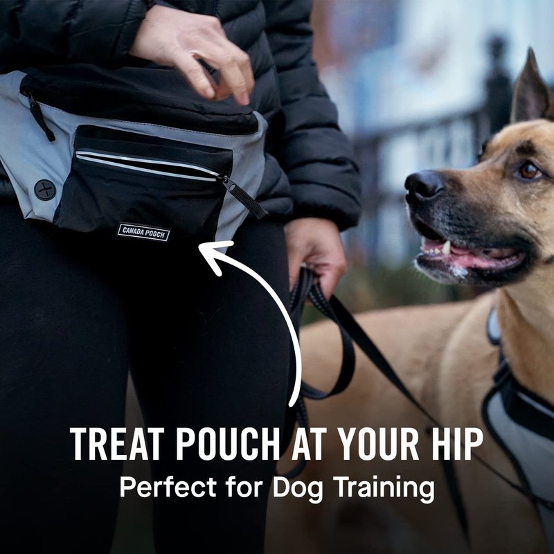 Canada Pooch Everything Dog Walking Fanny Pack - Dog Fanny Pack with Dog Poop Bag Dispenser & Dog Treat Pouch, Great as Dog Training Fanny Pack, Adjustable up to 54” - Reflective