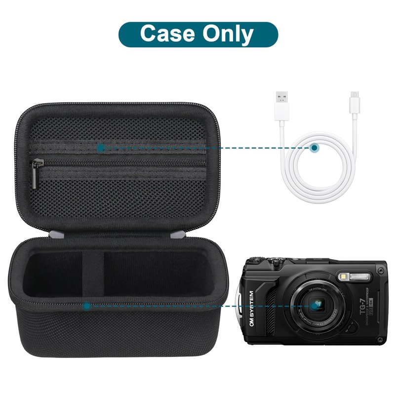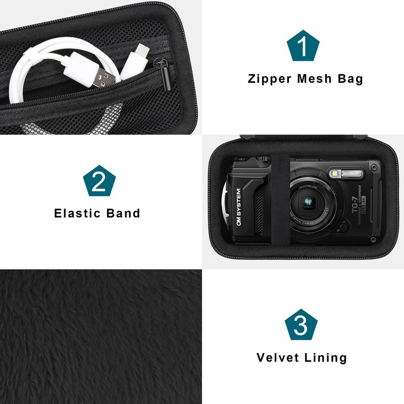 - 【Premium Material】 TG7 camera case made of scratch resistant fabric and high-quality durable EVA sturdy shell keeps your compact waterproof underwater camera protected. Soft velvet interior lining keeps your freeze proof TG-7 camera and small accessories free from scratches.