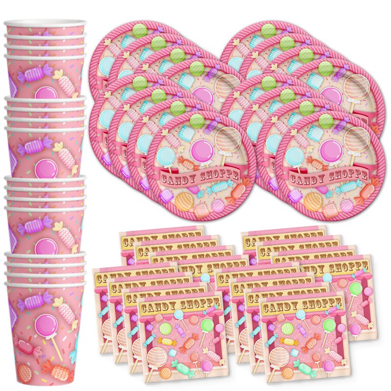 Candy Shoppe Birthday Party Supplies Set Plates Napkins Cups Tableware Kit for 16