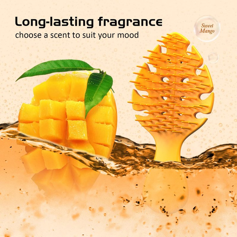 - đăScented HairbrushăOur hair brushes provide your hair with mood-enhancing scents. Strawberry scent: sweet, romantic, spring, and refreshing; Lemon scent: invigorating, fresh, and cheerful; Mango scent: smooth, fruity aroma, tropical, and luscious; Long-lasting fragrance.