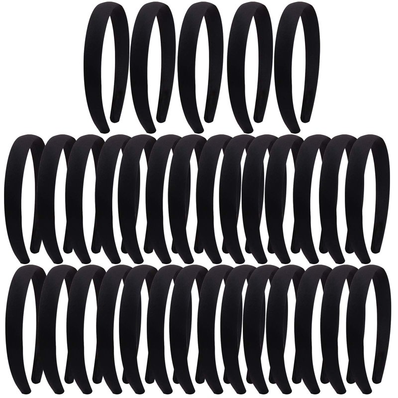 - Satin Covered Hair Band for women's hair, a pack of 33 0.8in width girls Black color satin headbands that come in a package.