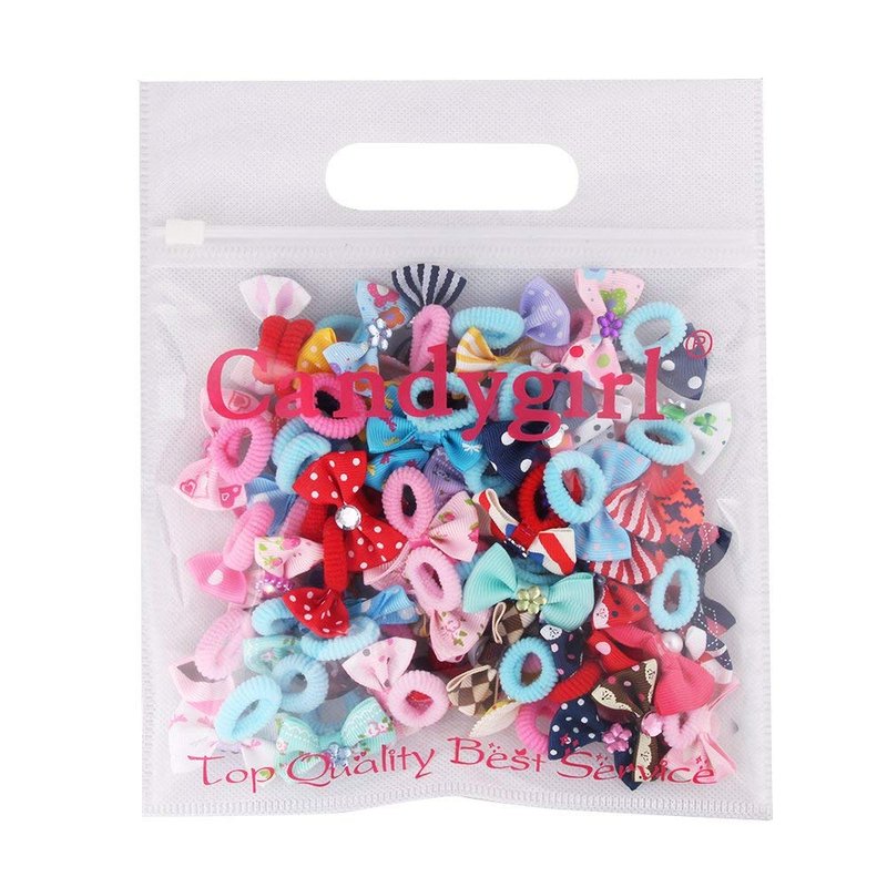 Candygirl 50 Pcs Bow Elastic Hair Ties,Girls Hair Accessories, Hair Accessories for Girls,Baby Hair Accessories for Girls, Value Set (50 small bow for girl or pets)