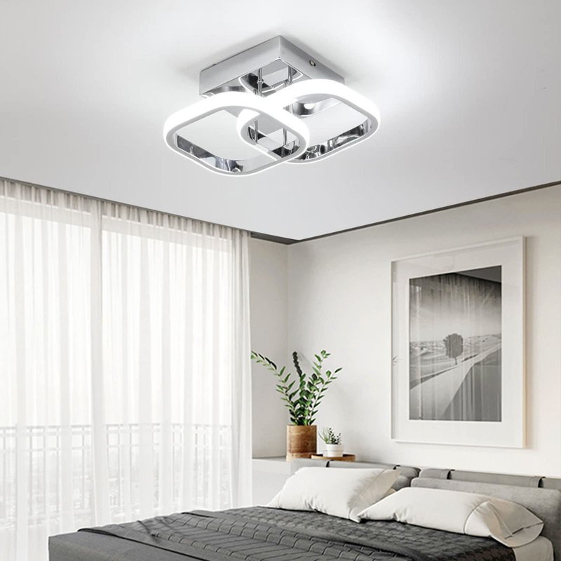 CANEOE Led Hallway Ceiling Light Fixtures, Square Modern Lamp, 6000K Chrome Finish Indoor Lighting Fixture for Living Room Bedroom Kitchen Bathroom Lights