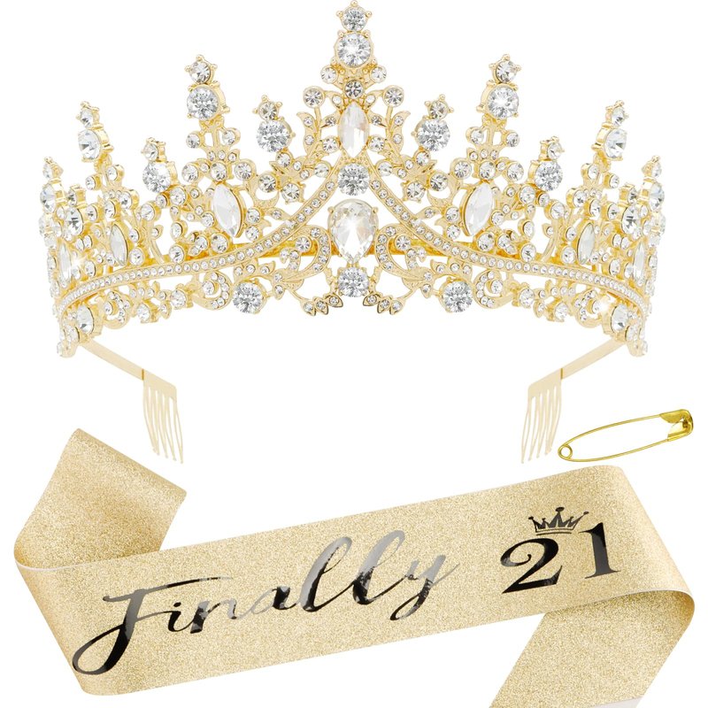 Canitor 21st Birthday Sash and Tiara Set 21st Sparkling Birthday Crown Dazzling Birthday Sash 21st Birthday Decorations 21st Birthday Gifts for Her Gold