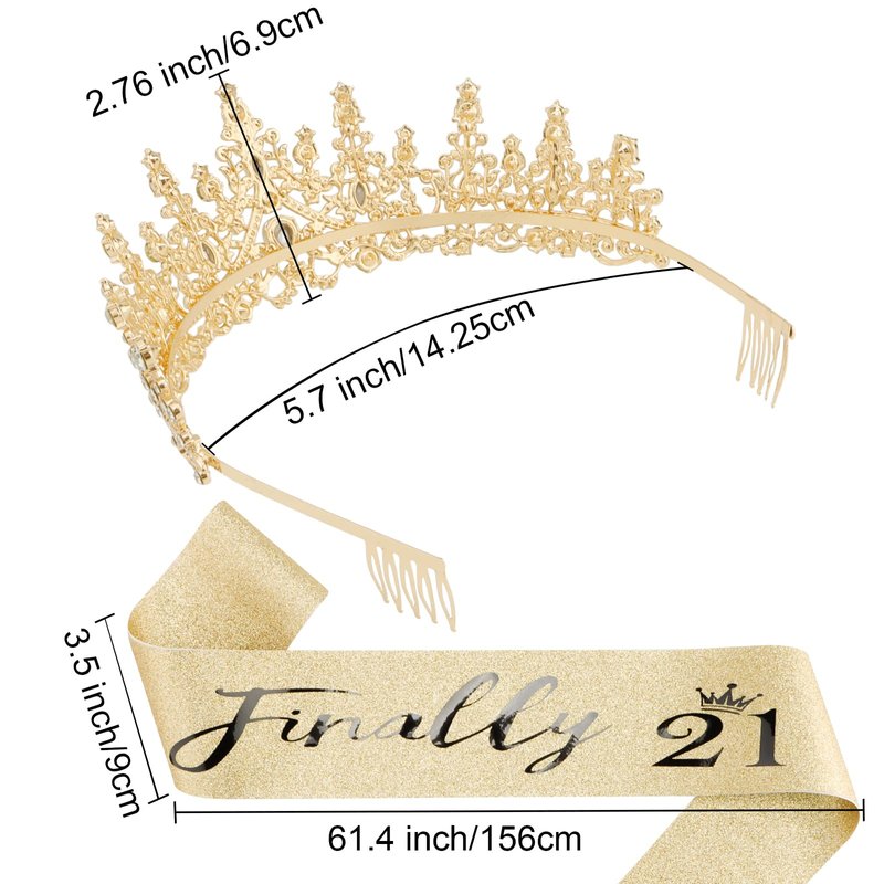 - 🎂 Proper Size for 21 Year Old Girl 👑: The Sash is 61 inches in Length and 3.8 inches in Width, and Tiara is 2.8 inches High and 6.3 inches Wide to fit all girls!