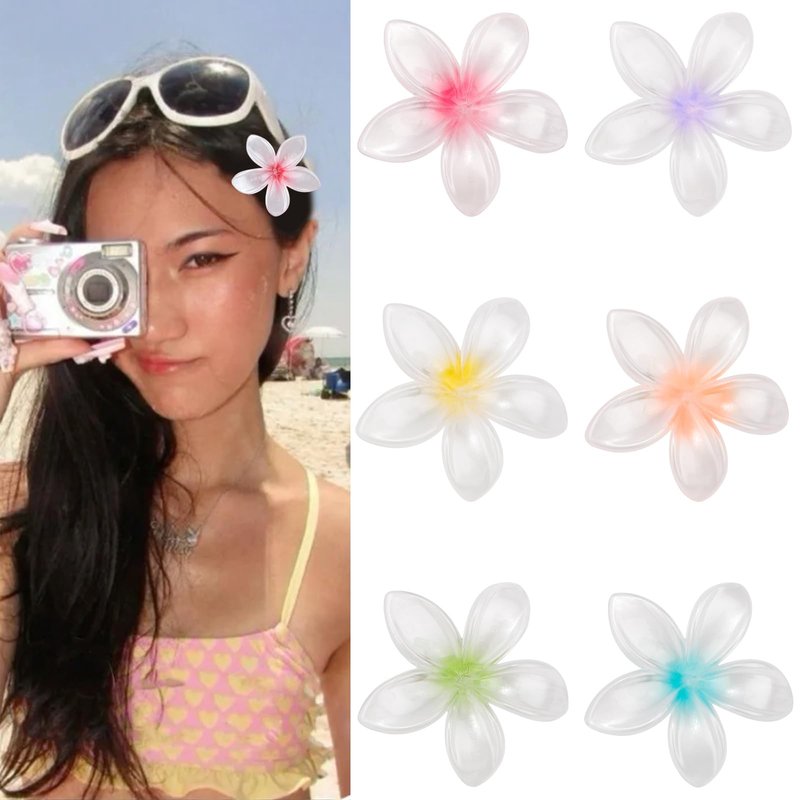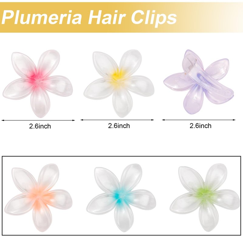 Canitor 6 PCS 2.6 inch Hawaiian Plumeria Flower Hair Clips Frangipani Flower Clips for Women Girls Summer Beach Holiday Hair Accessories for Women Luau Tropical Party Decoration