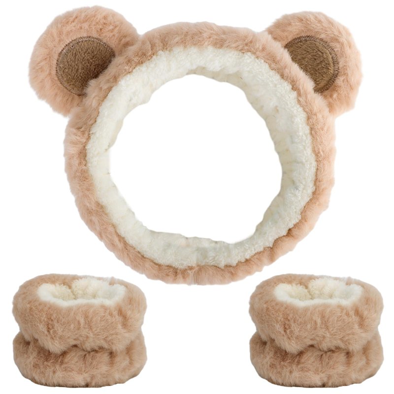 Canitor Face Wash Headband with Wrist Bands for Washing Face Soft Coral Fleece Spa Headband Makeup Headband Cute Animal Elastic Skincare Headband Wrist Towels (02-bear ears)