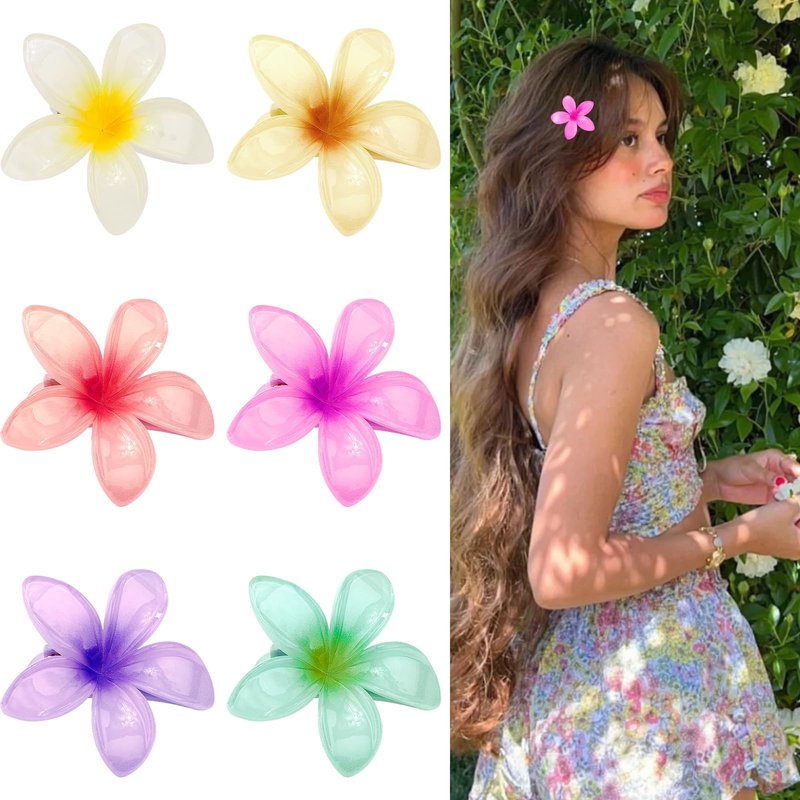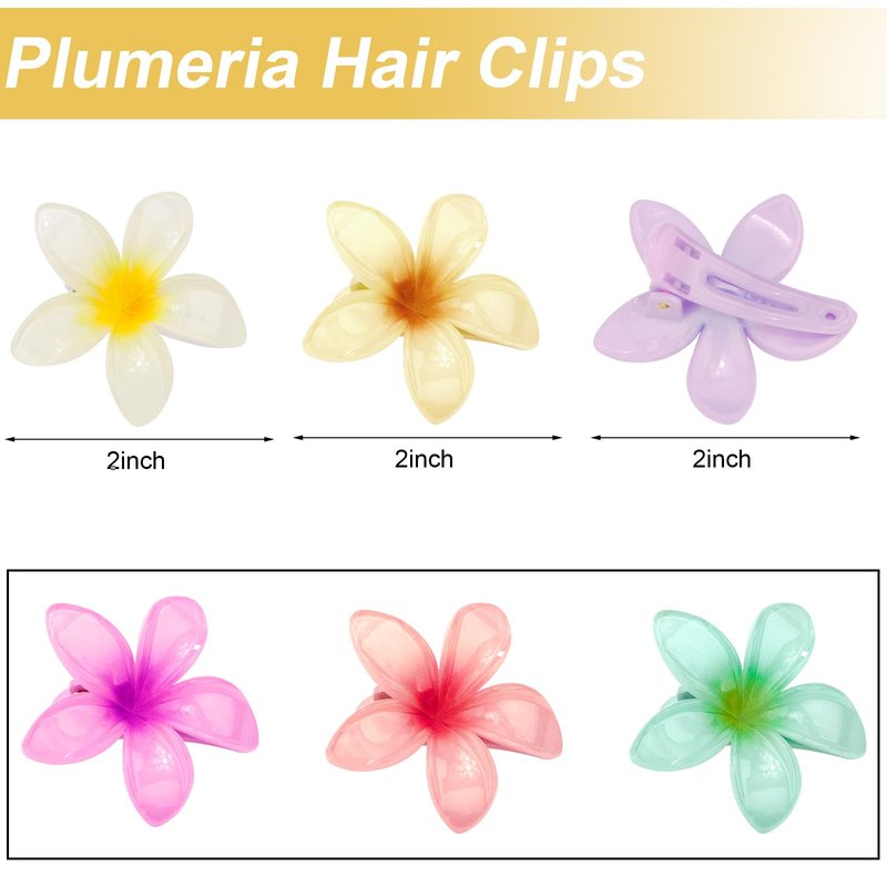 Canitor 6 PCS 1.8 inch Hawaiian Plumeria Flower Hair Clips Frangipani Flower Clips for Women Girls Summer Beach Holiday Hair Accessories for Women Luau Tropical Party Decoration