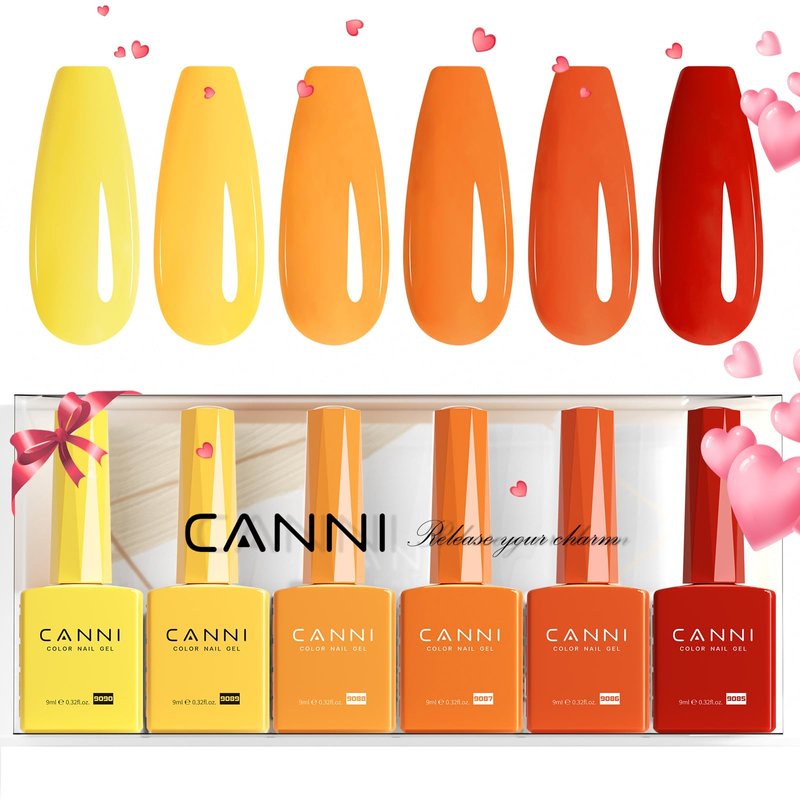 - ❤HEMA FREE FORMULA Yellow GEL NAIL POLISH SET: 6Pcs x 9ml/0.32oz CANNI Orange gel nail polish is specially formulated and does not contain HEMA, ensuring a safer and healthier nail care experience.