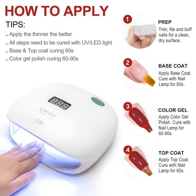 - 30 Days Long Lasting: CANNI insist on selling good consistency gel polish, it's not thick or gloopy , goes on pretty smoothly; with proper application, long lasting at least 30 days and not have any issues with chipping or peeling off