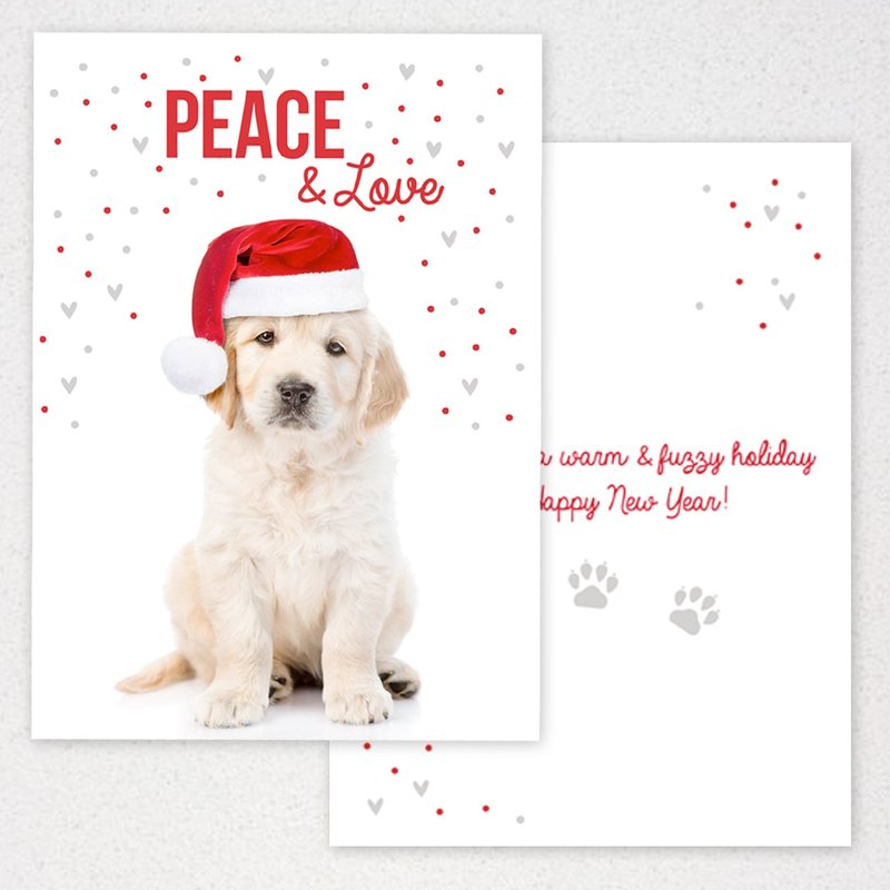 It's puppy love with a card that will draw oohs and aahs from your card recipients! Card verse: Peace & love - Wishing you a warm and fuzzy holiday and happy new year! Canopy Street is your source for greetings that celebrate special occasions and lifetime events. From fresh, trendy designs to elegant, eye-catching looks, there's a greeting that will express your style. In business since 2010, Canopy Street produces high-quality products that are shipped on time, at an affordable price.