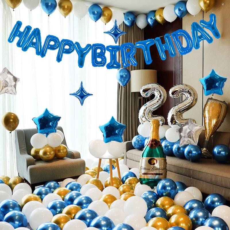 - 🎈VALUABLE PACK : Each package come with ①Blue Happy Birthday letters x13pcs(16in) ② Blue four-pointed star x3pcs (10in)③ Blue five-pointed star x3pcs (10in) ④ Blue five-pointed star x3pcs+Silver five-pointed star x3pcs (18in) ⑤Plastic straw x2pcs ⑥Ribbon x1pcs.