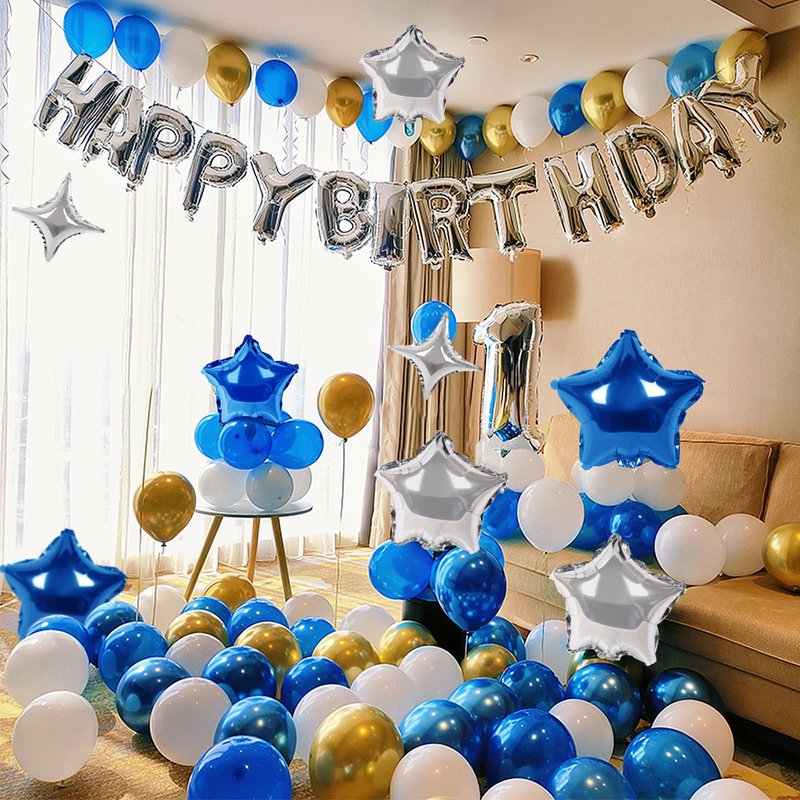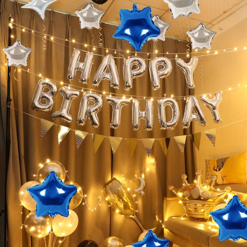 - 🎈VALUABLE PACK : Each package come with ①Silver Happy Birthday letters x13pcs(16in) ② Silver four-pointed star x3pcs (10in)③ Blue five-pointed star x3pcs (10in) ④ Blue five-pointed star x3pcs+Silver five-pointed star x3pcs (18in) ⑤Plastic straw x2pcs ⑥Ribbon x1pcs.