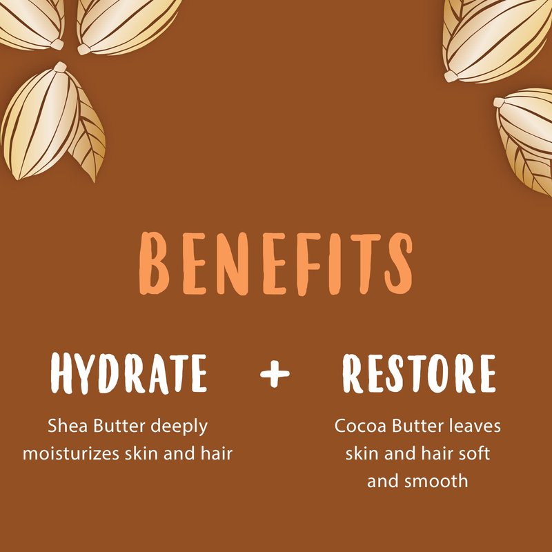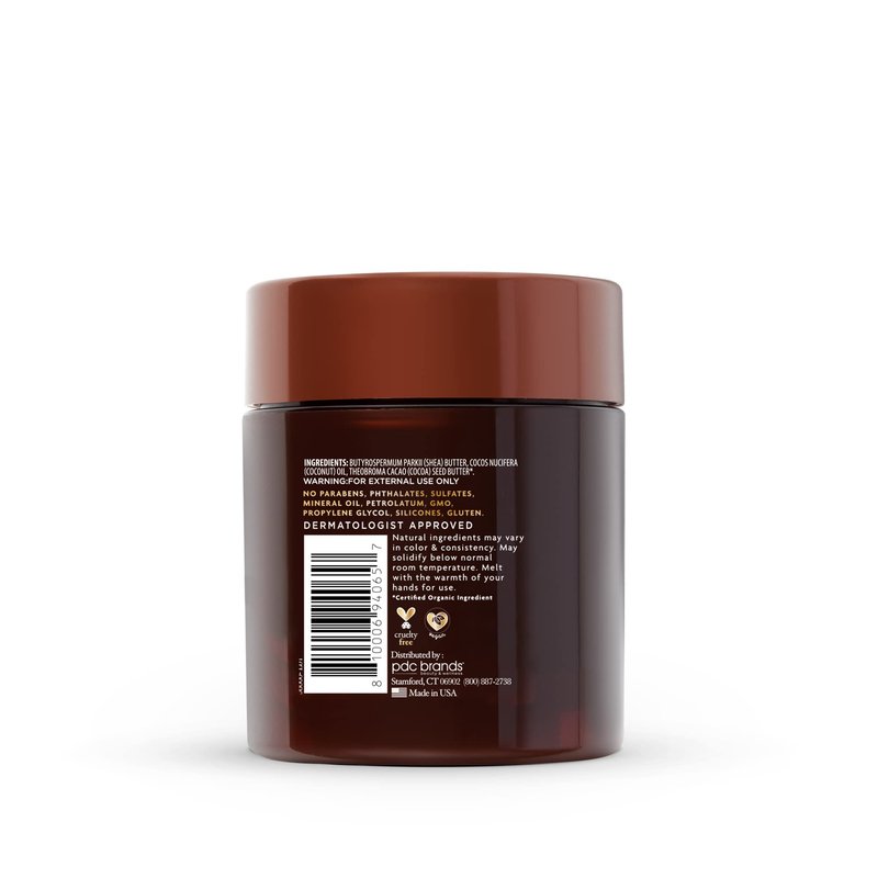 - 100% pure and certified Cocoa Butter, Shea Butter and Coconut Oil
