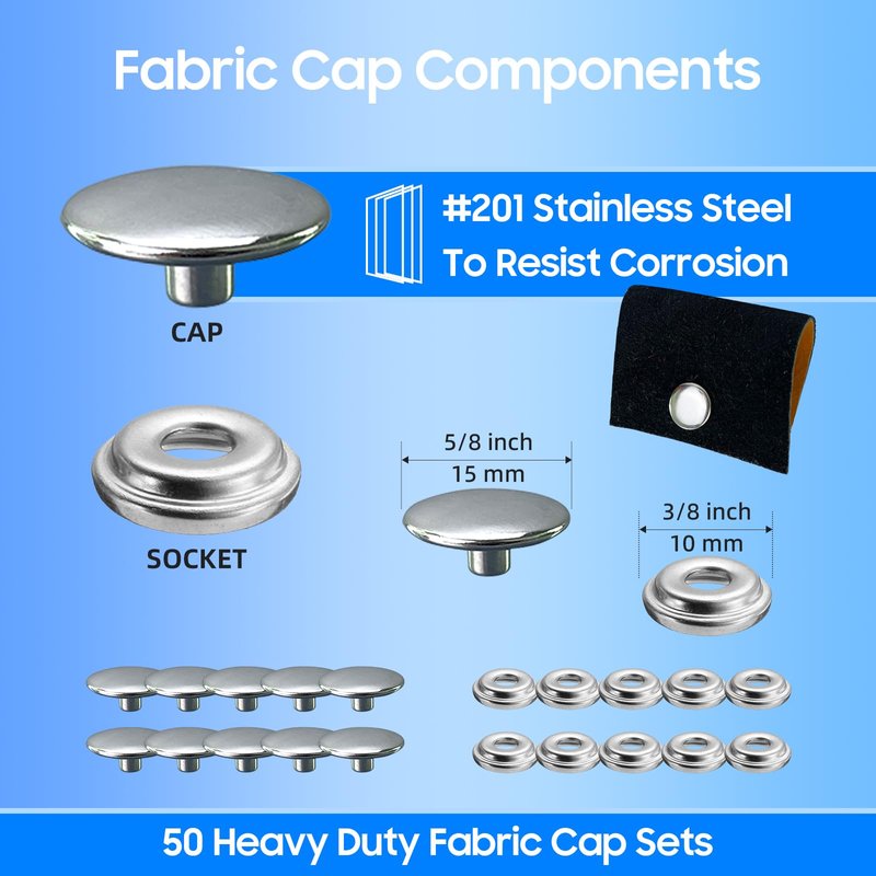 - Rexhubro Canvas Snap Kit features (50 set)150 pieces of marine-grade stainless steel snaps, ensuring durability and long-lasting performance.