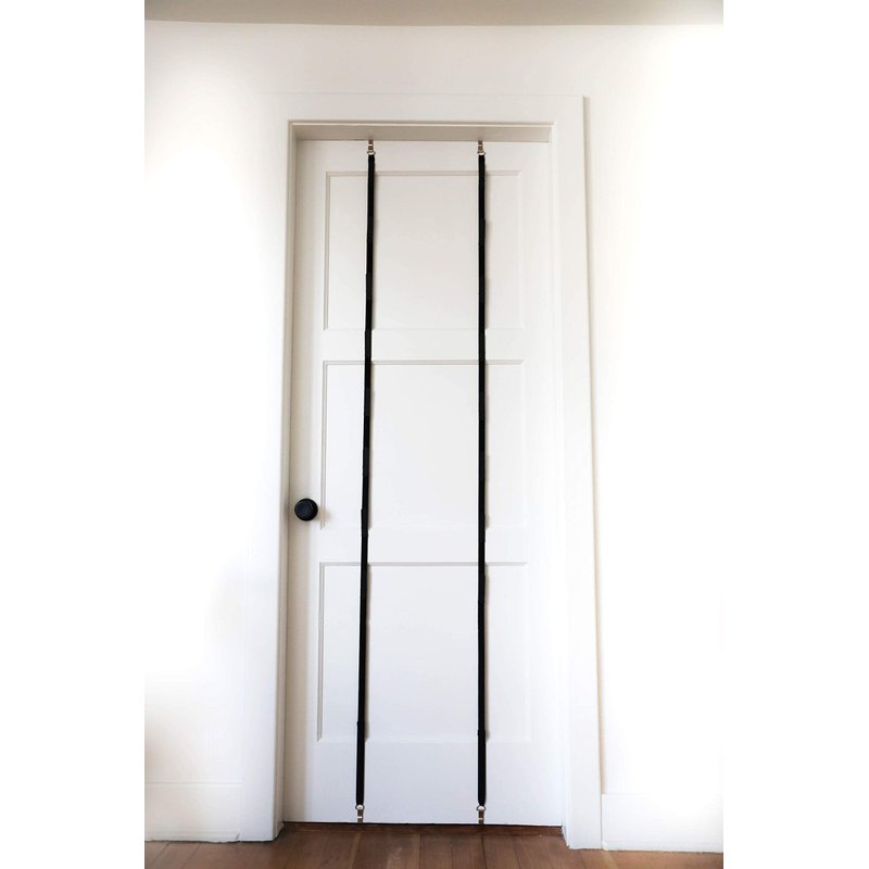 - ATTACHES TO DOOR with easy elastic strips over any standard door. No hassle and no difficult installation.