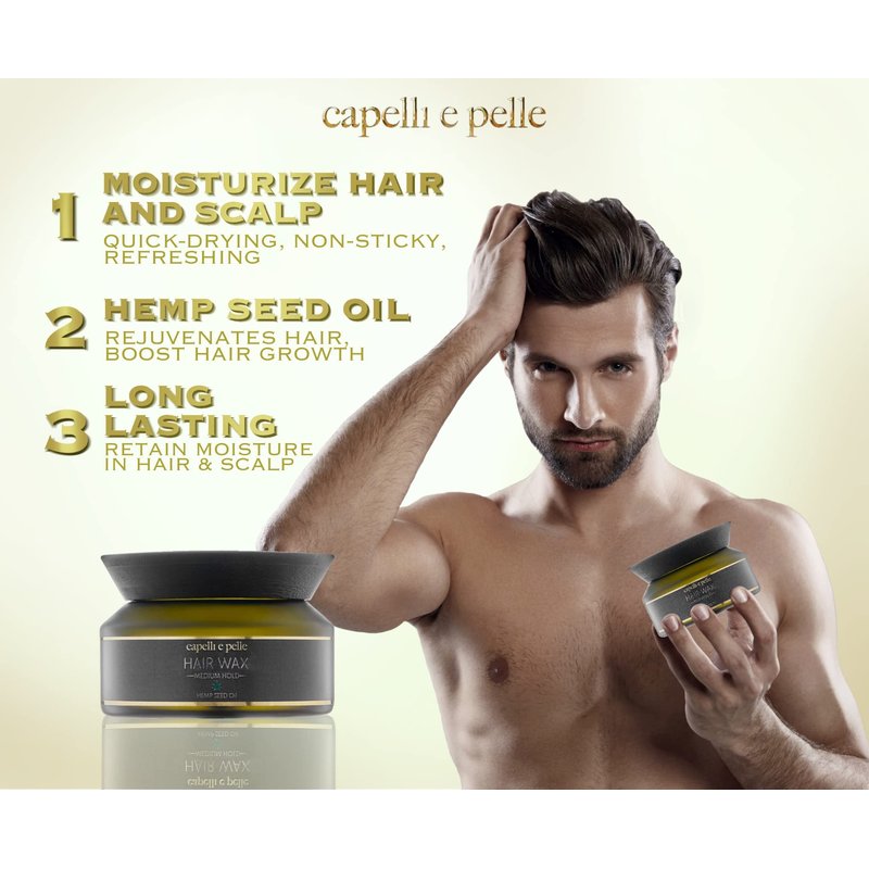 - HAIR STYLING FOR MEN & WOMEN: Looking for a hair wax that enables flowing flexibility with your hair for amazing styling results? Capelli e Pelle's Medium Hair Wax is perfect for both men and women. Our light formula does not create a feeling of heaviness and can be used daily to create different hairstyles.
