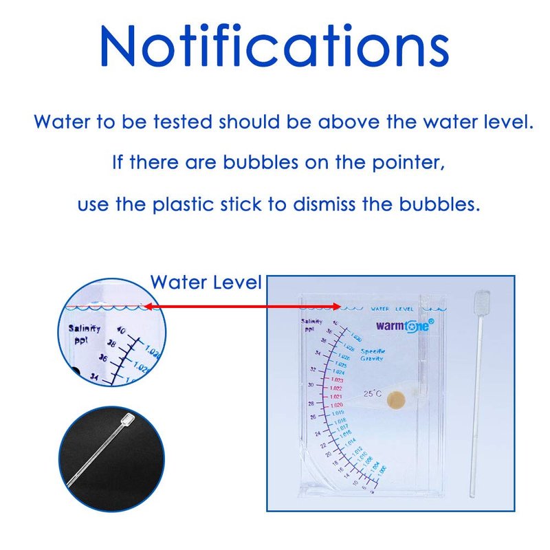 - 🐠 Wide Usage:Fit for brackish and reef salt marine aquariums. Perfect for testing both salinity and specific gravity of your brackish and marine tank.Includes salinity and specific gravity scales.Suitable for fresh water and sea water.
