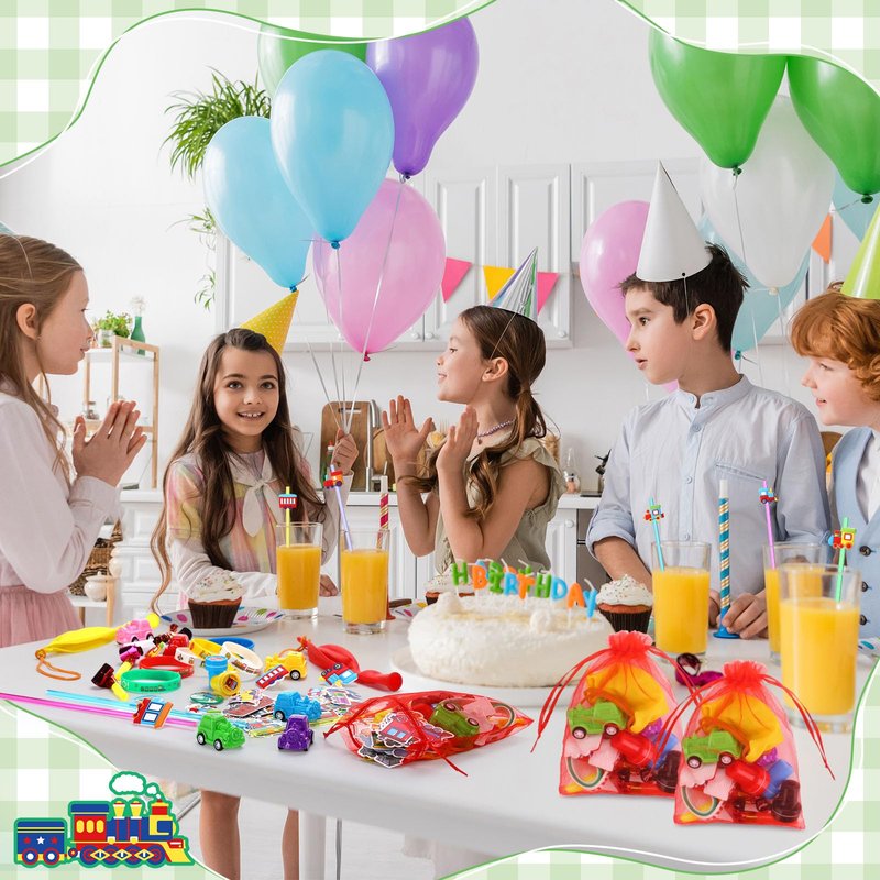 - Train Theme Design: our train party favors feature a train theme, and each accessory is full of train element design; A beautiful wristband to symbolize your passion for trains, a mini and adorable train car that's sure to keep little engineers engaged, moreover, in addition, there are celebration balloons to make your party full of joy