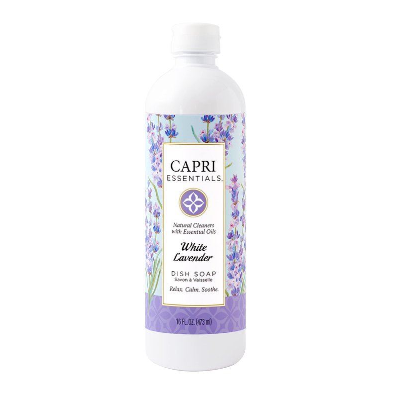 - Aromatic, Natural Cleaner: Wash your dishes while renewing your senses with the essential oils in Capri’s White Lavender dish soap. With a unique blend of plant-based soaps, these natural household supplies cut through the toughest grease and leave behind gleaming dishes.