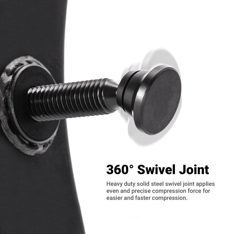 - Heavy duty solid steel swivel joint applies even and precise compression force for easier and faster compression