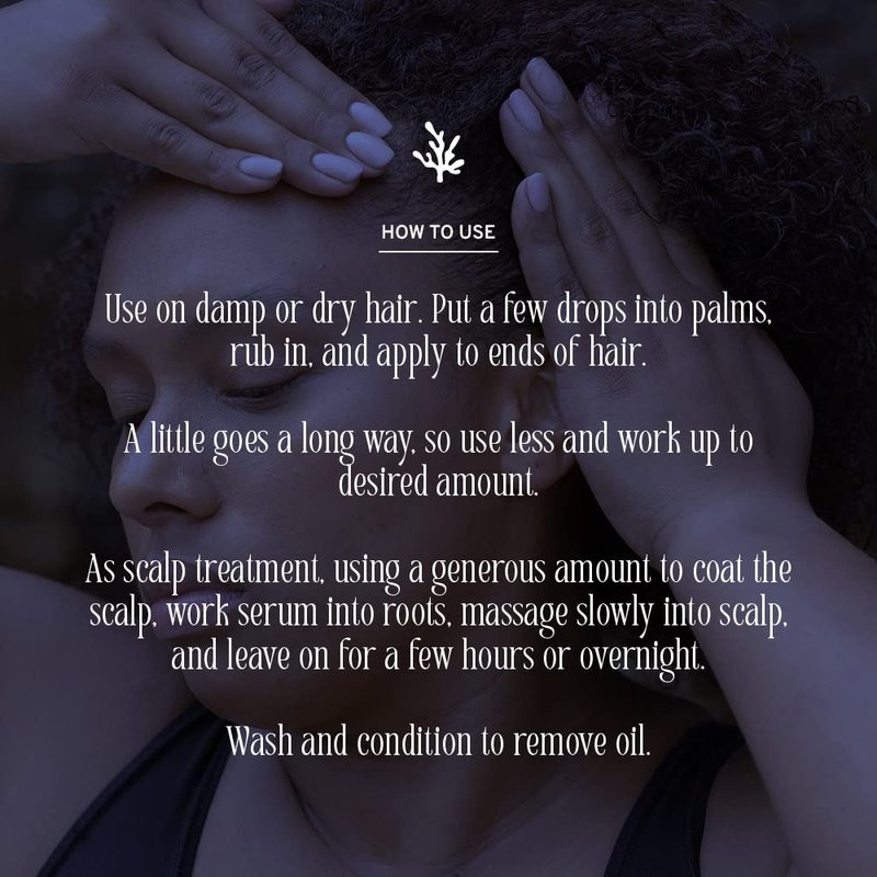 - SCENTED WITH ESSENTIAL OILS: Naturally scented with organic essential oils that will keep your hair smelling fresh. Simply rub a few drops into palms and work throughout ends of damp or dry hair. Can also be used to tame frizz. For deep nourishing treatment, can be massaged into scalp