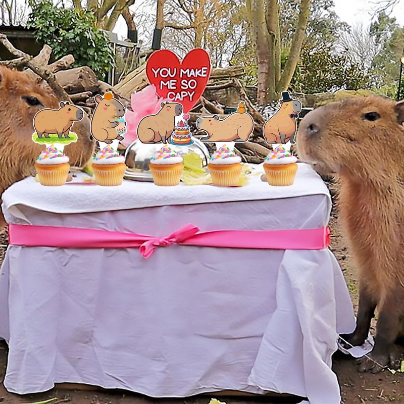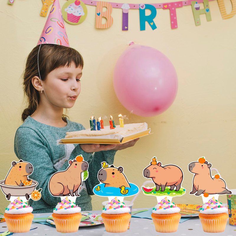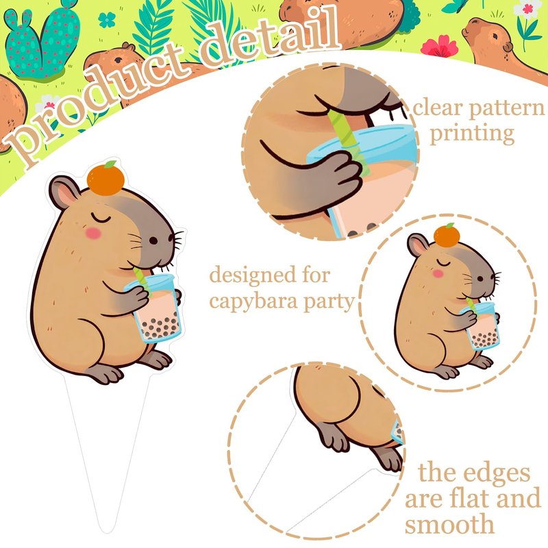 - Quality:Our capybara birthday cupcake toppers are made of high grade thick cardstock. Each capybara print looks stunning in high definition double sided printing. Still be stable enough to decorate your cake for long periods of time
