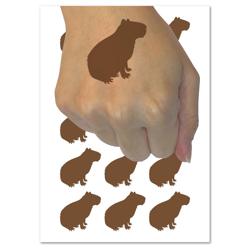 Capybara Rodent Silhouette Temporary Tattoo Water Resistant Fake Body Art Set Collection - 54 1" Tattoos (1 Sheet)