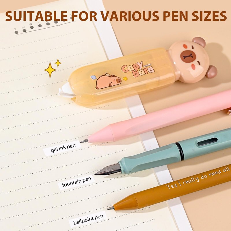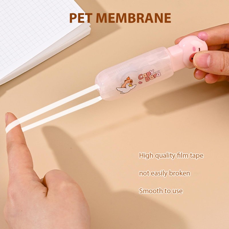 - Cute Capybara Design: Designed in the shape of a pen, get your mistakes corrected with cute capybara correction tape precisely with the right and left hand.Built-in PET thickened film tape contribute to evenly coated, smooth writing and good neatly cut and well rolled, hardly breaking during rolling. It comes with a double gear structure that automatically tightens when the correction tape is slack or detached, If you're looking for a low-cost way to keep your work at its best,this cute capybara correction tape is a great option