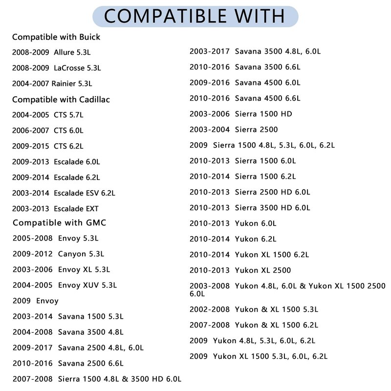 ★ Compatible with Chevrolet Trailblazer / Tahoe / Avalanche / Camaro / Colorado / Express / Impala / Silverado / Suburban
