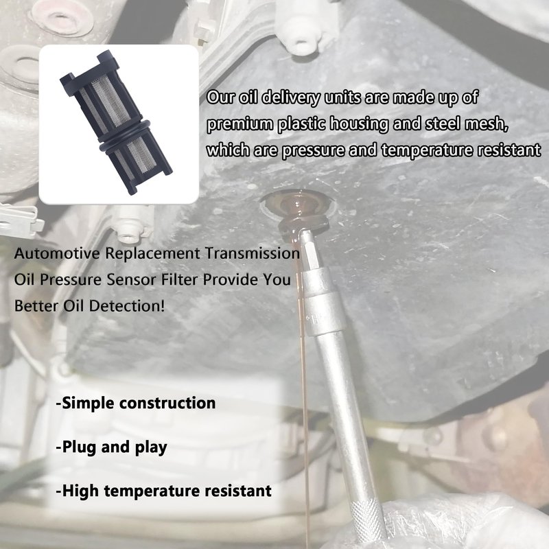 - 🚖 EASY INSTALLATION: The automotive replacement transmission oil pressure sensors filter is used to monitor the oil content and pressure of your vehicle, it is designed for the application with simple structure, you can complete the installation more easily. Simply remove the old part and install the new one, saving you valuable time, effort and money.