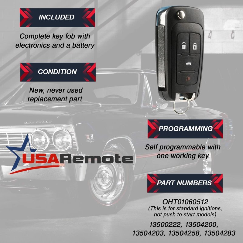 Car Key Fob Keyless Entry Remote Flip fits 2010-2017 Buick Allure Encore Lacrosse Regal Verano / Chevy Camaro Cruze Equinox Impala Malibu Sonic / GMC Terrain (OHT01060512)
