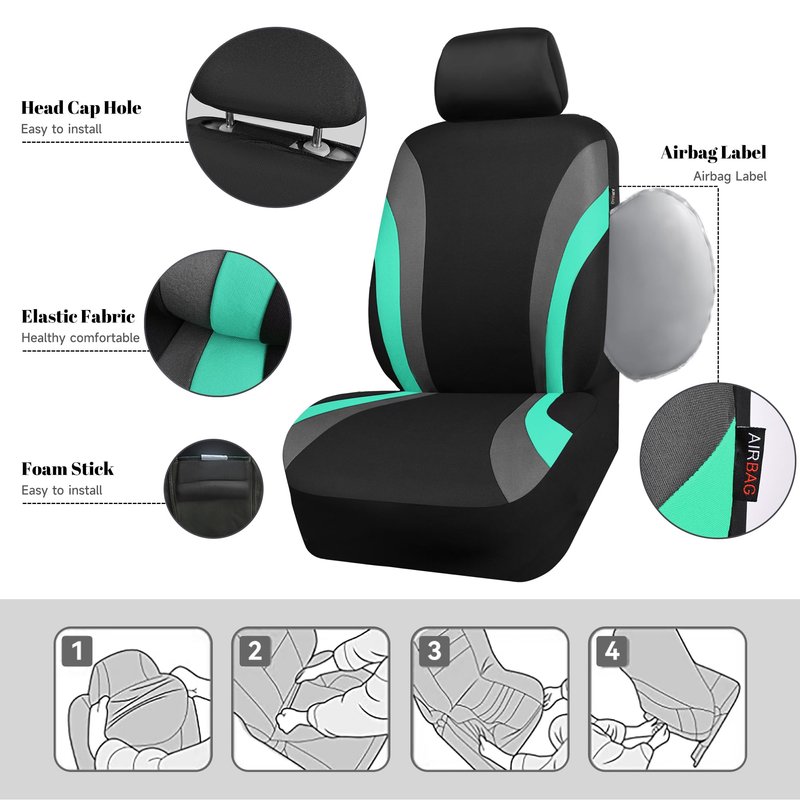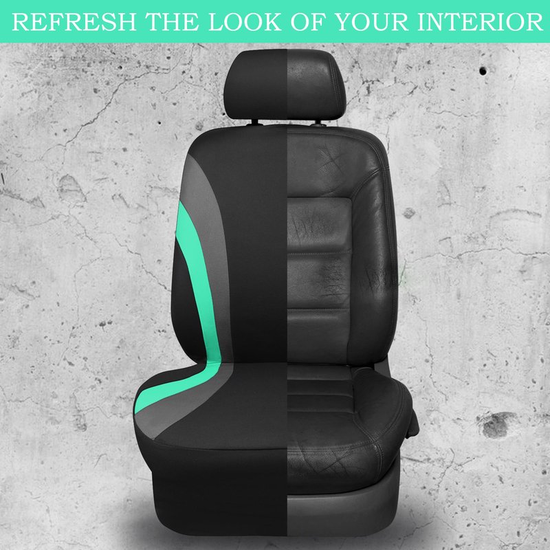 CAR PASS Line Rider Sporty Front Seat Covers,Mint Car Seat Covers Two Front Seats Only for Cute Women Girl, Airbag Compatible,Universal Fit Sedans,Cars,Vans,SUV,Truck(Black and Mint)