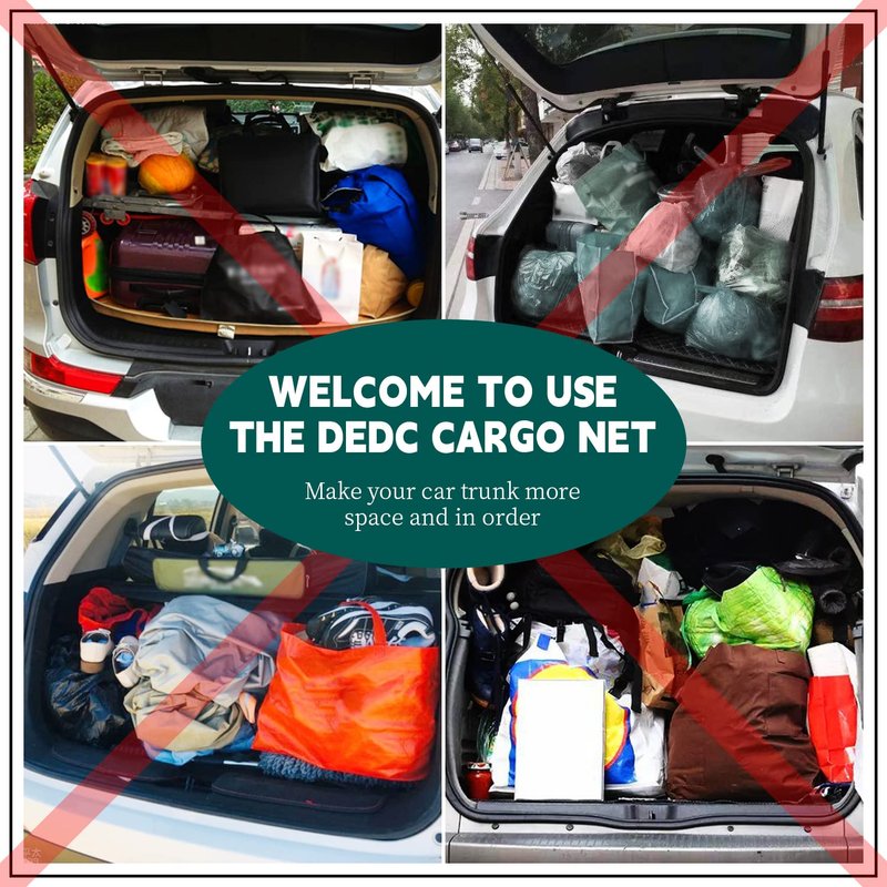 - 【EASY TO INSTALL MESH CARGO NET】The cargo storage net can attach to mounting points in the rear cargo area with 4 self-locking hooks. All necessary accessories are included in the package, so you can quickly and easily mount them, with no need for any other special tools. If you have any questions about the size of the DEDC car cargo net, please feel free to contact us before purchasing