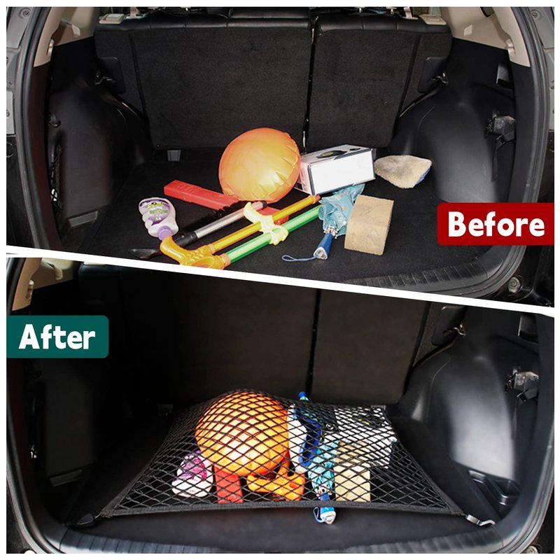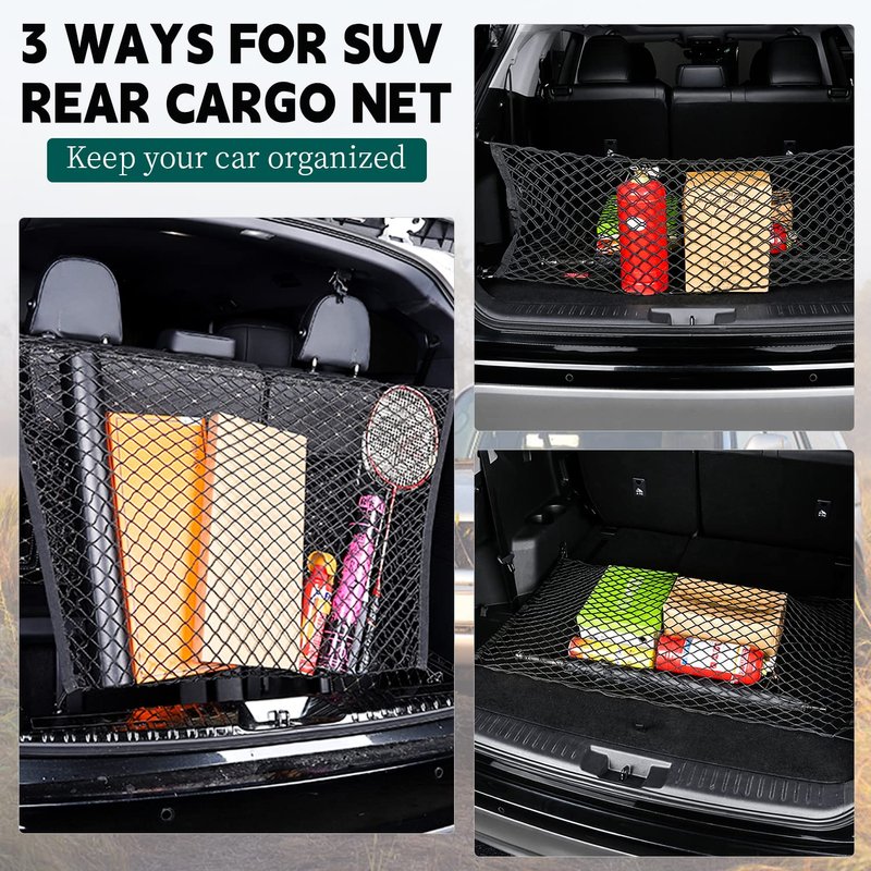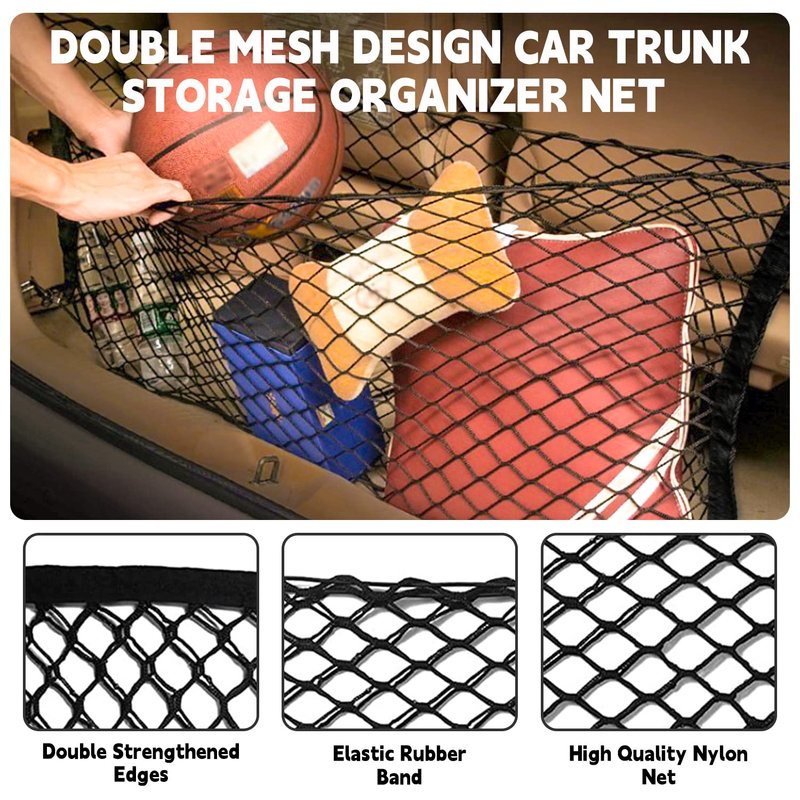 - 【EXCELLENT MATERIAL CARGO NET】Made high-quality nylon mesh net with elastic rubber bands designed for maximum strength, durability, and elasticity. The trunk cargo nets also have double mesh which is more durable and firmer than others