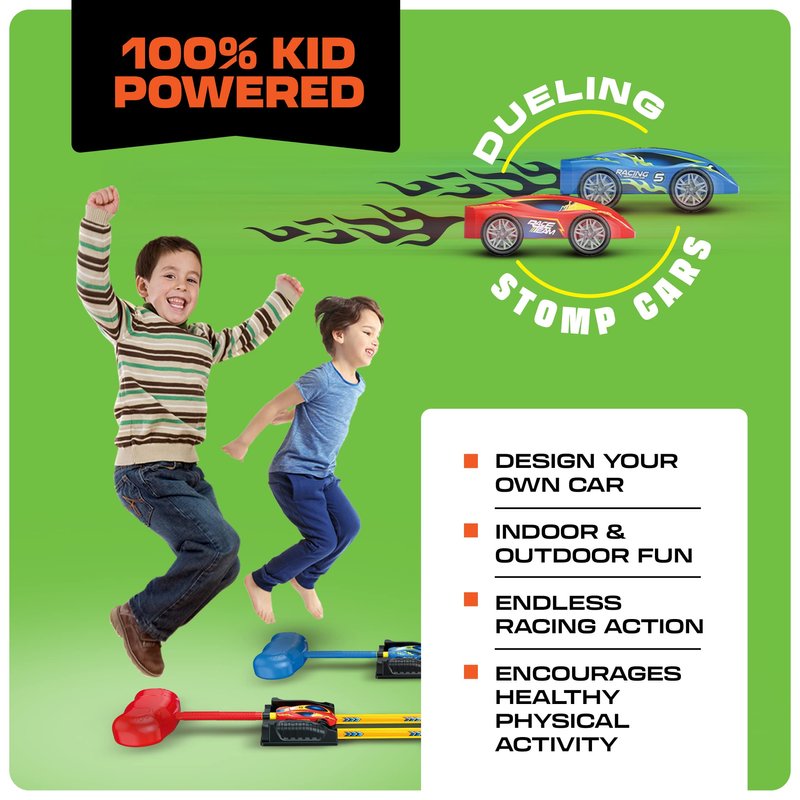 - 100% Kid-powered Excitement: The powerful launcher is powered by kids as they jump and stomp, making for an unforgettable racing experience. With the included jump ramp, kids can perform awesome stunts and tricks as their cars soar to incredible heights.