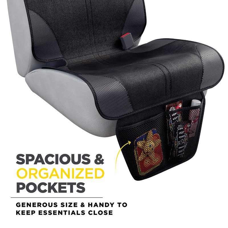 - ✓ Perfectly Sized, Added Pockets - Our Car Seat Protection for Baby Carseat is designed to accommodate Forward or Rear-Facing Car Seats and Booster Seats in a wide range of vehicles, including cars, trucks, sedans, SUVs, and vans. Additionally, the mesh pockets beneath the baby's feet allow you to conveniently store your child's car accessories travel essentials such as toys, drink bottles, and wipes while on the road.