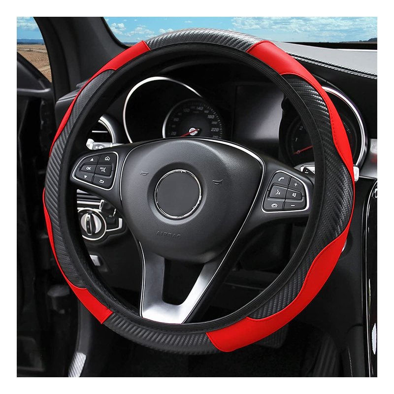 - 【Carbon Fiber Leather】: Our steering wheel cover is made of fashionable and durable carbon fiber leather, which has a very good feel and can be anti-slip and waterproof. The healthy and environmentally friendly material brings you an excellent touch. The fabric is warm in winter and cool in summer so that you can use it all year round.