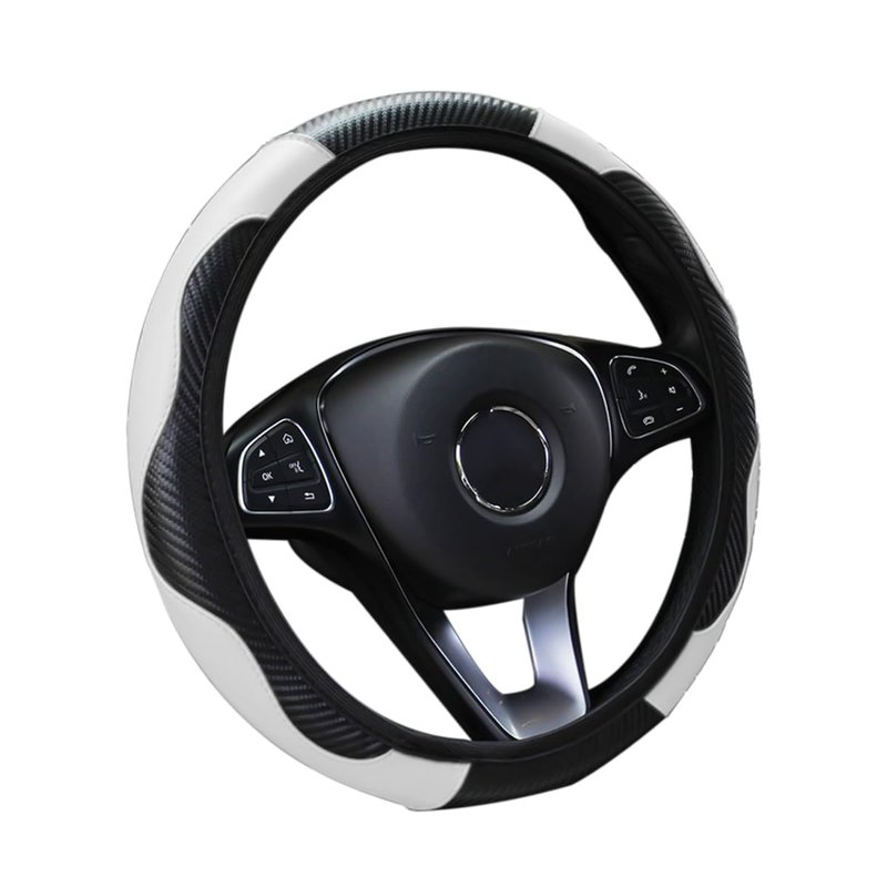- Carbon fiber texture stitching makes this steering wheel cover more sporty.
