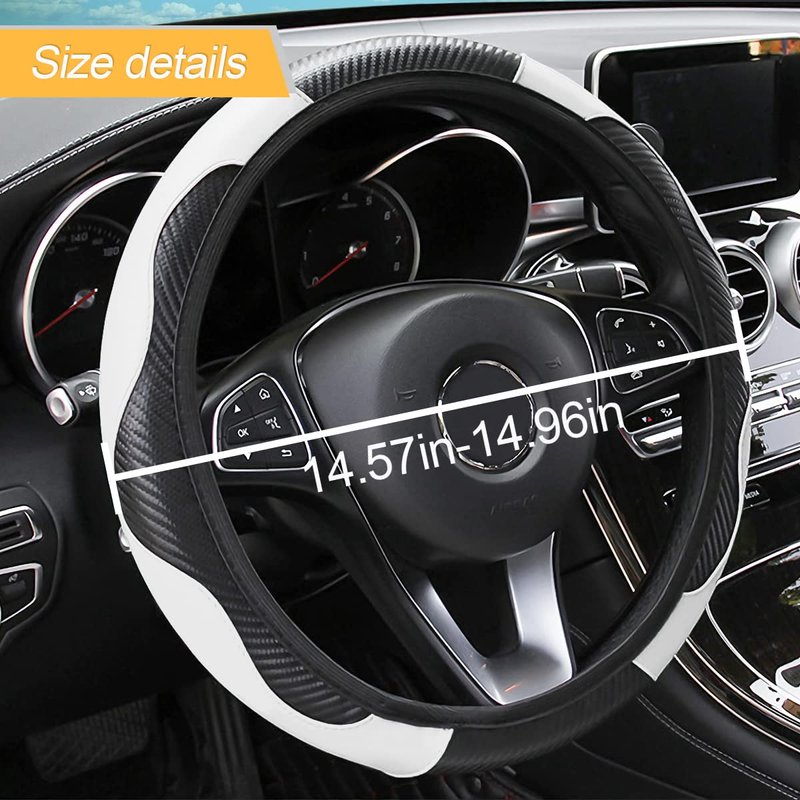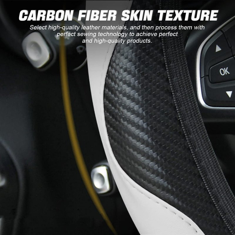 - 【Carbon Fiber Leather】: Our steering wheel cover is made of fashionable and durable carbon fiber leather, which has a very good feel and can be anti-slip and waterproof. The healthy and environmentally friendly material brings you an excellent touch. The fabric is warm in winter and cool in summer so that you can use it all year round.