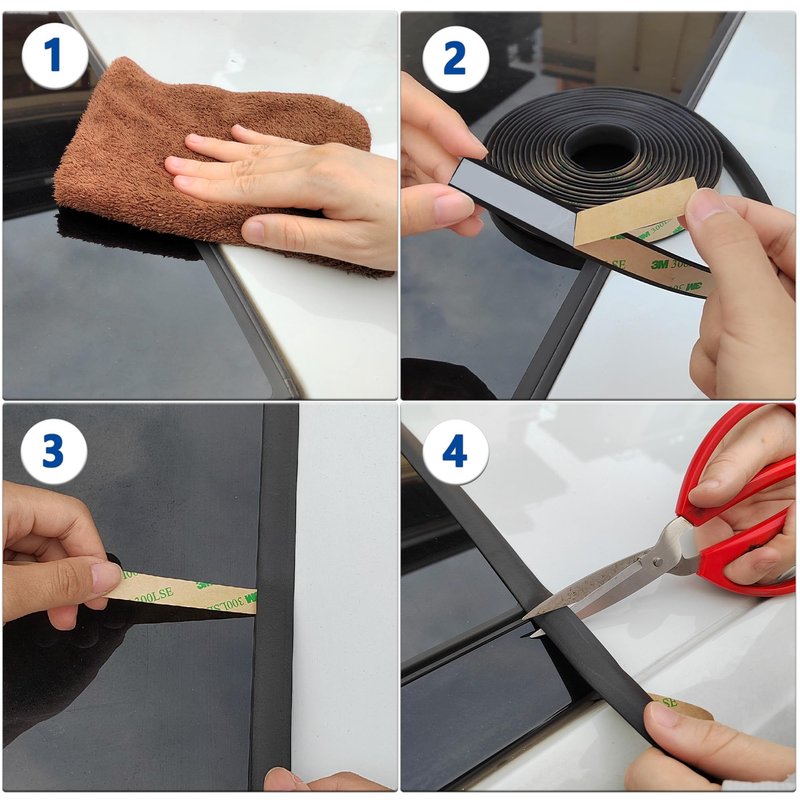 - 🚖 Firm Installation:The installation of the rubber seal strip is very simple and can be easily completed by one person. [1] Wipe the installation area and gaps of the car body clean. [2] Tear off the back adhesive of the rubber weather stripping in sections and stick it one by one on the vehicle body (the back glue can be heated with a hair dryer before use). [3] Cut off the remaining rubber trim.