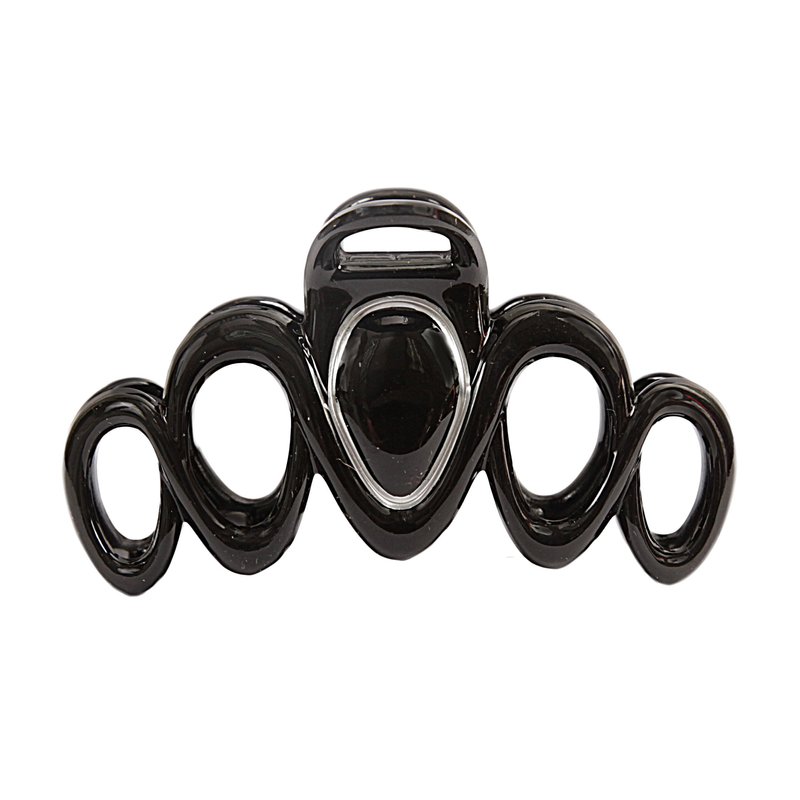Caravan French Pointed Open Hair Claw in Black and Hand Painted with Silver